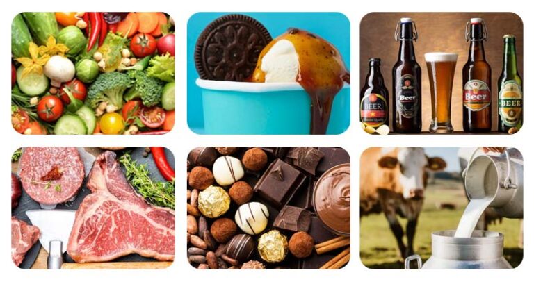 - Productos lácteos: leche fresca, yogur, queso, mantequilla, etc.