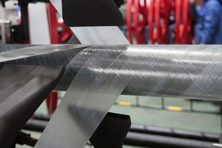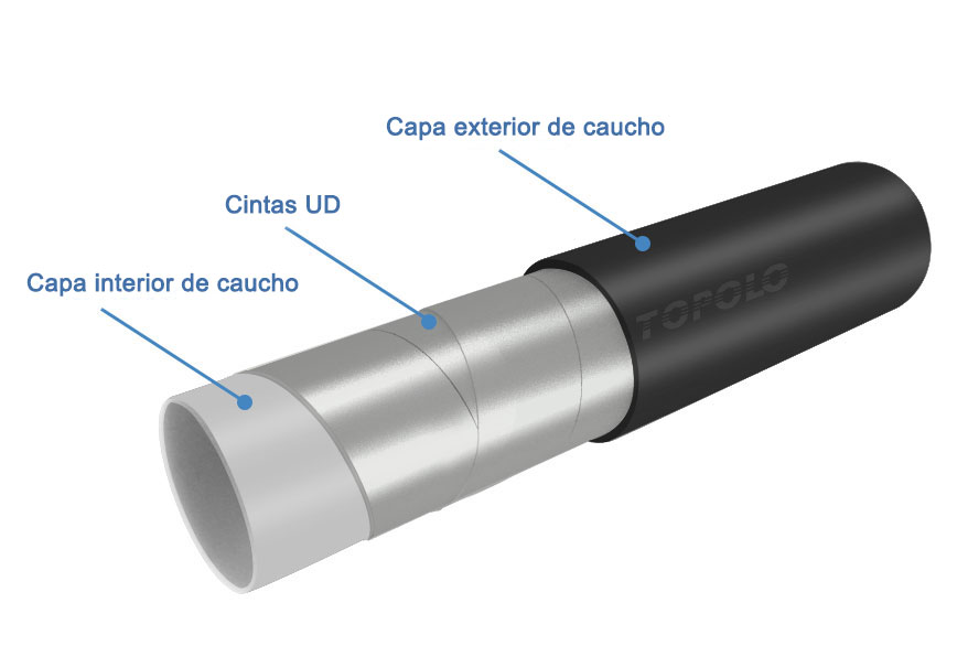 El tubo de revestimiento extruido se enrolla repetidamente en espiral con una cinta unidireccional reforzada para formar la capa de refuerzo requerida y luego se extruye y recubre con una capa de revestimiento exterior. Debido a que la cinta unidireccional es muy delgada, es necesario enrollarla repetidamente en muchas capas, generalmente de 4 a 10 o más capas, y se requiere calentamiento y presurización durante el bobinado.