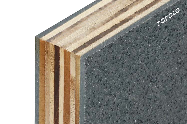 Las partículas de arena de cuarzo de la superficie proporcionan propiedades antideslizantes, mientras que la dureza de la base de madera contrachapada proporciona absorción de impactos, evitando el agrietamiento causado por la caída de herramientas.
