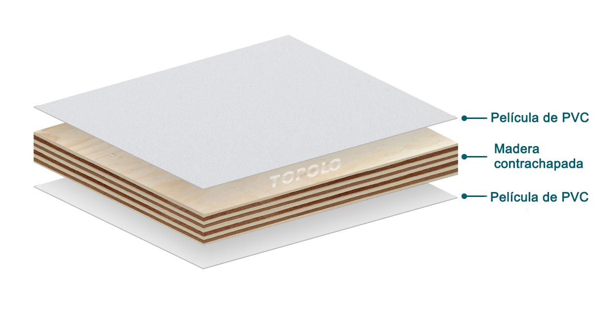 - Núcleo: Madera contrachapada. (Abedul, pino, álamo, eucalipto, roble, etc.)