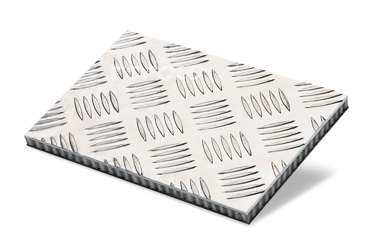 Este panel compuesto combina una lámina de aluminio antideslizante a cuadros con un núcleo de nido de abeja de polipropileno (PP) termoplástico, unido con adhesivo estructural de alta resistencia. Representa la fusión perfecta de la durabilidad del metal y el rendimiento ligero del compuesto de polímero.