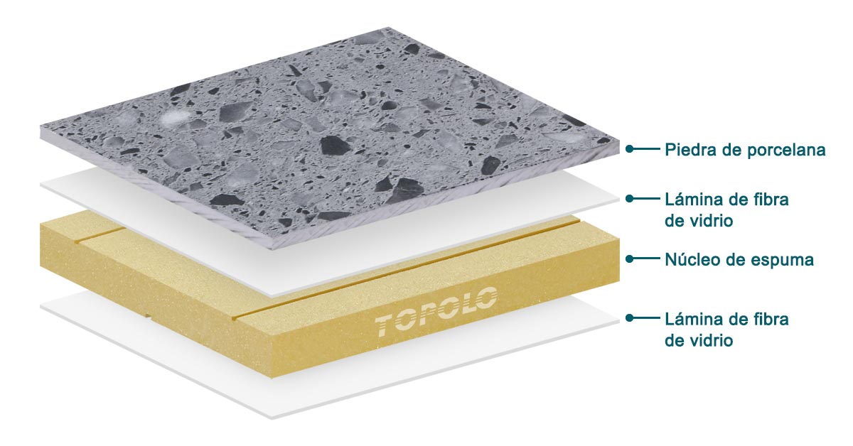Al combinar superficies de piedra porcelánica con paneles compuestos de fibra de vidrio, TOPOLO crea una nueva generación de sistemas de paredes y pisos que equilibran el rendimiento estructural y el atractivo visual: