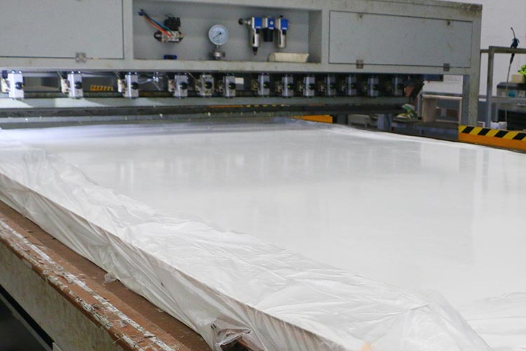 - Los paneles se laminan en una prensa de alta presión al vacío, lo que hace que las capas estén más unidas y sea menos probable que se deslaminen.