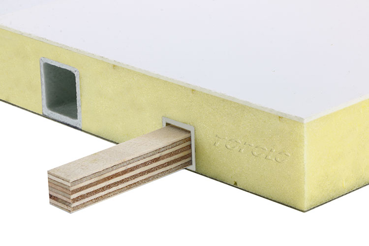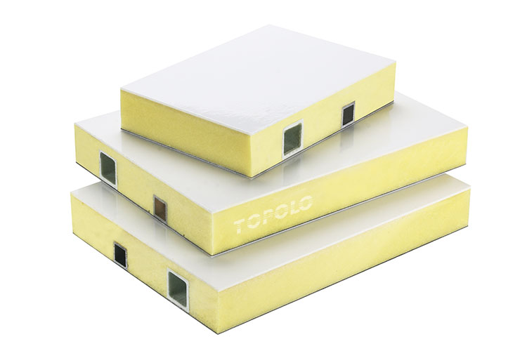 - Los tubos de fibra de vidrio o tubos de aluminio están incrustados dentro del panel para mejorar la resistencia estructural del panel.