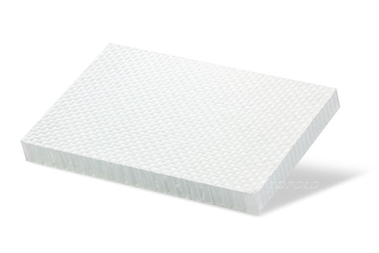 Al combinar fibras tejidas de fibra de vidrio y panal de polipropileno, se crea un panel con integridad estructural y ligereza. Se utiliza en industrias que requieren materiales ligeros y de alta resistencia, como la aeroespacial, la automovilística y la construcción.