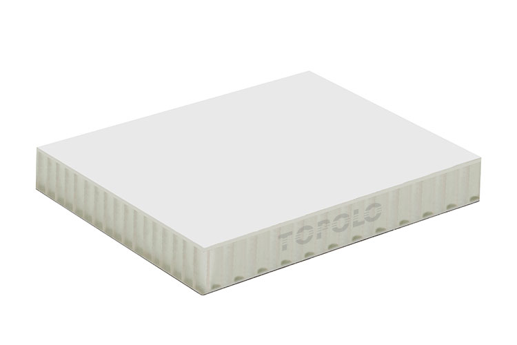 Los paneles sándwich termoplásticos de nido de abeja de polipropileno son materiales compuestos diferentes de los paneles sándwich de nido de abeja adhesivos tradicionales. Están hechos de láminas laminadas CFRT (termoplástico reforzado con fibra continua) y núcleos de nido de abeja de polipropileno (PP) mediante procesamiento compuesto térmico. Debido a que la resina termoplástica se impregna entre sí durante el proceso de calentamiento, el material de la superficie y el material del núcleo de nido de abeja están más estrechamente compuestos y son difíciles de separar después del enfriamiento. Este tipo de fuerza de unión no se puede lograr solo con adhesivo.