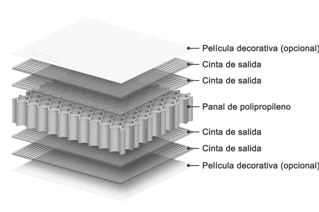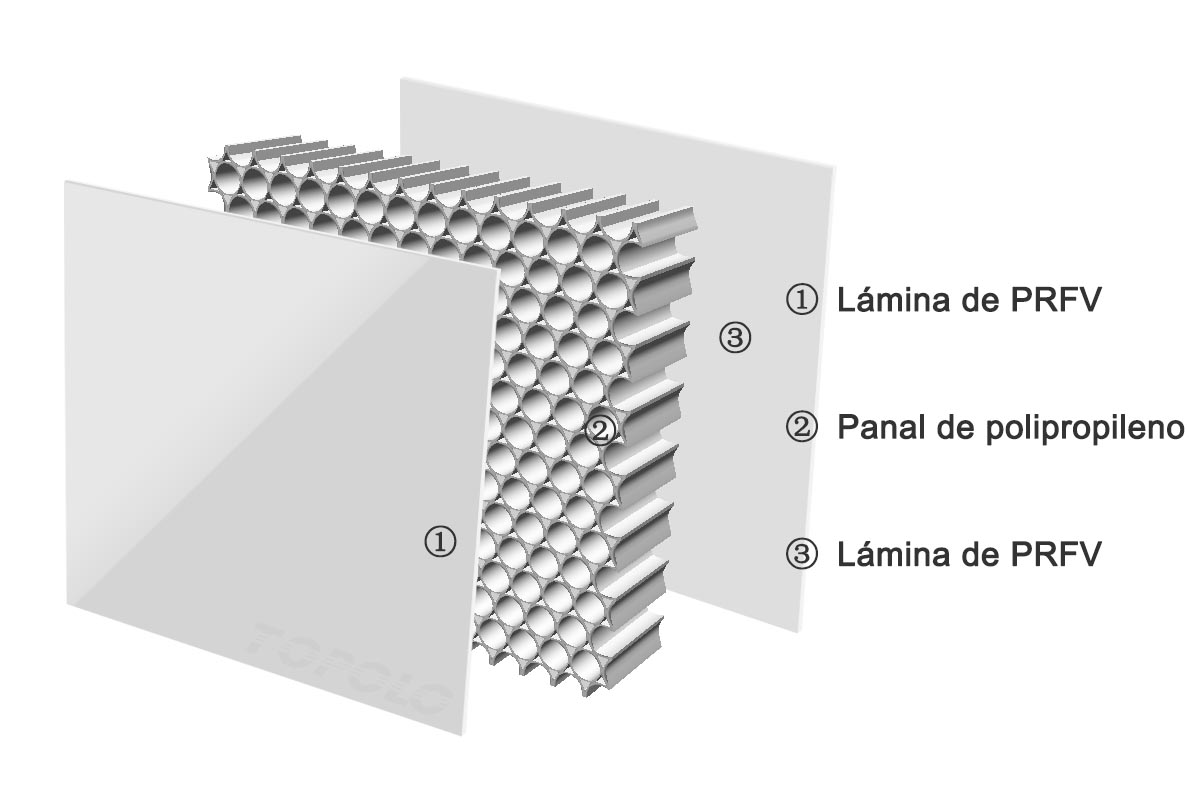 | Composición del material | Panal de abeja de polipropileno + FRP | Panal de polipropileno CFRT + | Panal de aluminio + polipropileno |