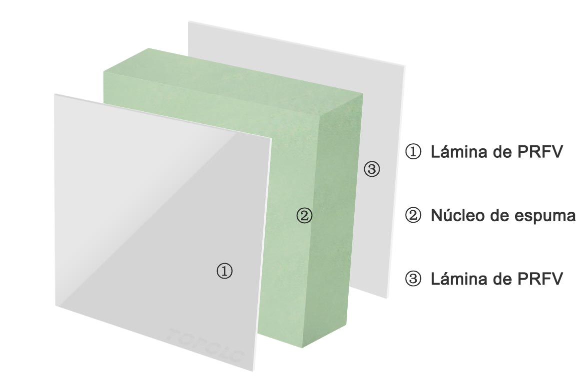 - La superficie del PRFV está recubierta con gelcoat para lograr un efecto espejo.