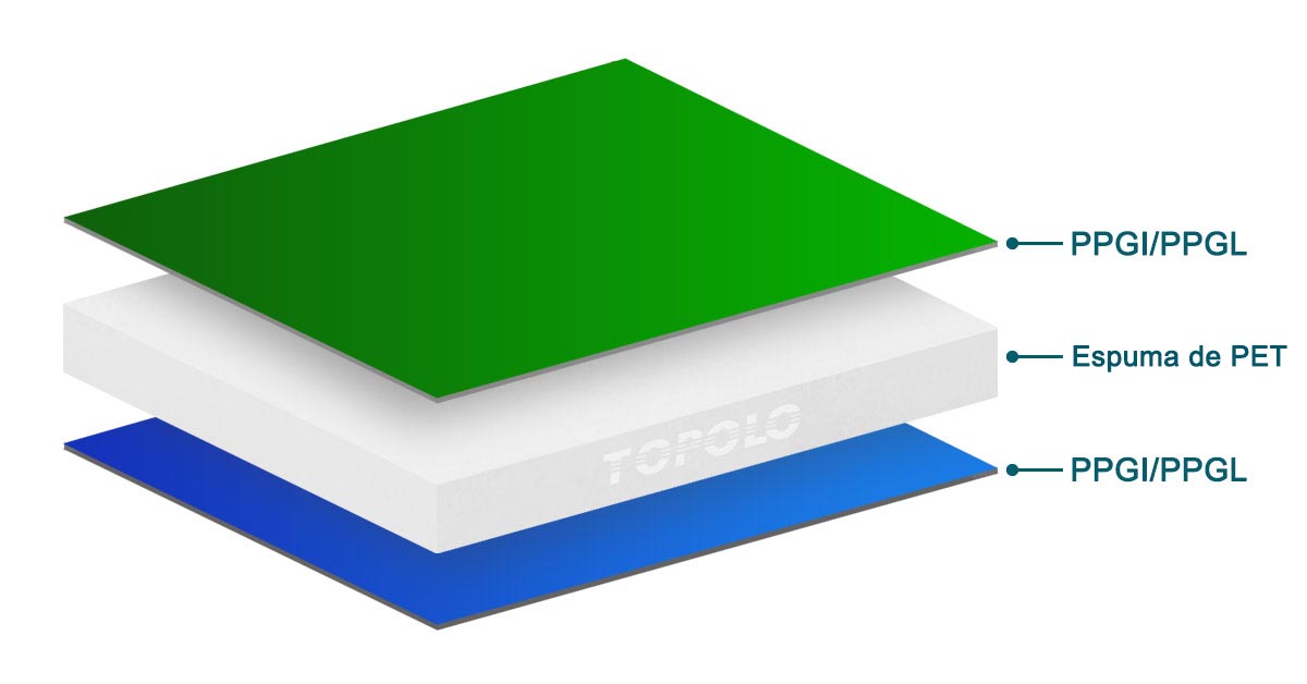 Paneles sándwich de espuma de PET con revestimiento de acero revestido