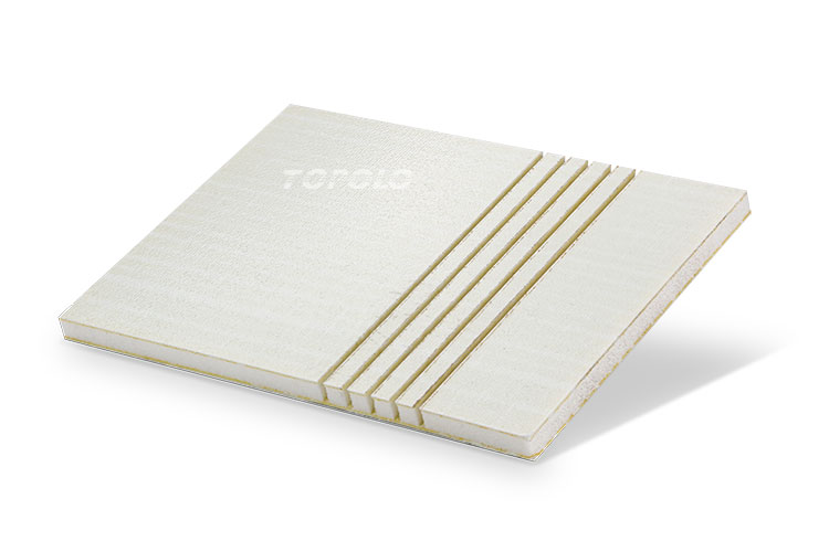 El panel utiliza espuma de PET de alto rendimiento como material central, con baja densidad y alta resistencia estructural. Reduce significativamente el peso total mientras mantiene una excelente resistencia a la compresión y a la flexión. Esto lo convierte en una solución ideal para lograr un equilibrio perfecto entre ligereza y capacidad de carga en vehículos de transporte, cerramientos de edificios y componentes marinos.