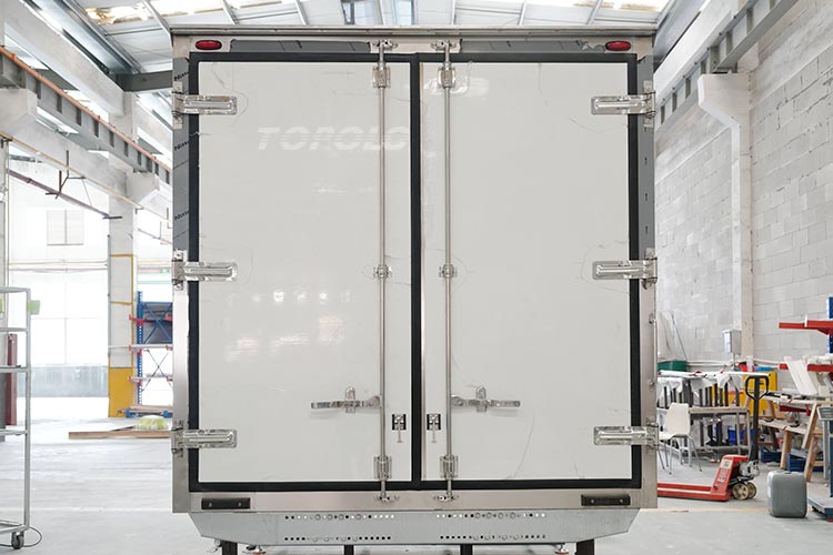 Las puertas de los camiones frigoríficos de diseño exclusivo de TOPOLOGROUP proporcionan un mejor aislamiento térmico y un mejor rendimiento de sellado.