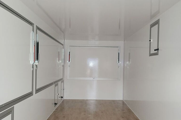 - Estructura ligera: La carrocería está fabricada con paneles sándwich ligeros de espuma revestida de FRP (XPS), y el perfil de la carrocería es de aleación de aluminio ligera y de alta resistencia.