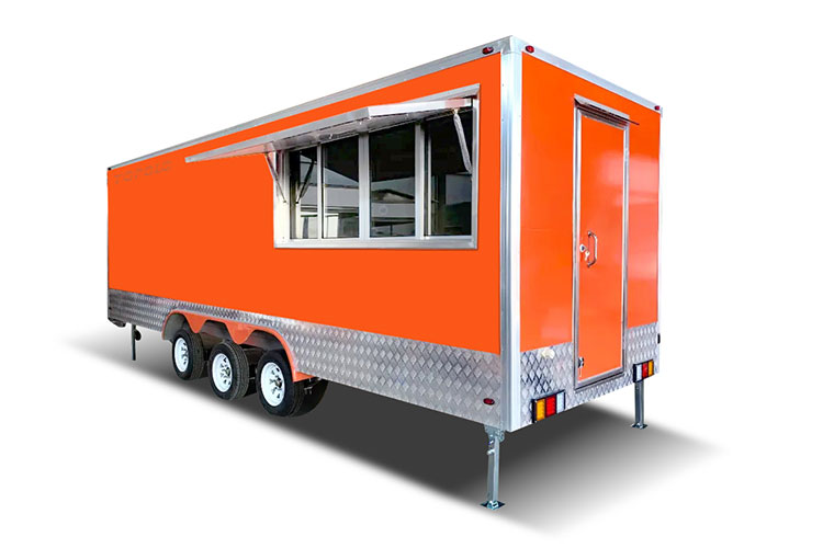 Los remolques de alimentos de tres ejes están diseñados para ofrecer más espacio y mayor capacidad de carga que sus contrapartes de uno o dos ejes. Estos remolques se utilizan a menudo para operaciones de alimentos de gran volumen, lo que permite mayor espacio de almacenamiento y trabajo en su interior. La configuración de tres ejes también proporciona mayor estabilidad y maniobrabilidad, especialmente al cargar electrodomésticos pesados o grandes cantidades de suministros.