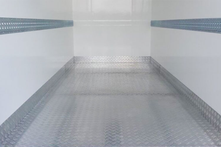El piso de aluminio antideslizante puede evitar eficazmente que los productos se dañen debido a golpes durante el transporte, al tiempo que garantiza la limpieza e higiene del ambiente interior del remolque.